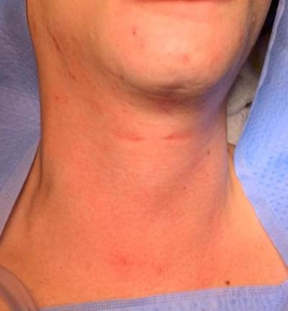 Se a cicatriz é algo que o incomoda, fale com seu Médico para que possa ser feita outras formas onde a cicatriz não é vista. Lembro que o mais comum e prático é quando acessamos o pescoço normalmente e as cicatrizes na grande maioria das vezes ficam muito, muito boas .