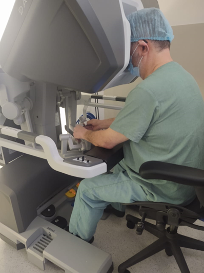 Ë uma cirurgia que fazemos com o auxílio do robô,. O robô tem uma visão muito maior e melhor do caso, enxergando em 3 D, onde sua lente chega a girar 540 graus ! é um recurso maravilhoso!